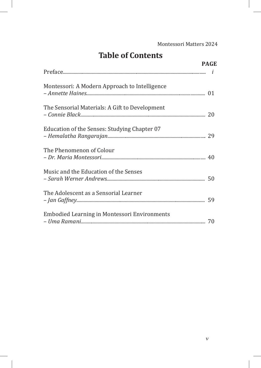 A collection of articles based on the importance of the Senses in education.